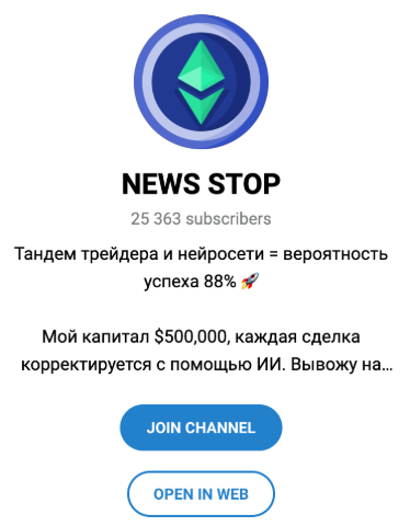 Наша команда экспертов проверила канал “NEWS STOP”. По результатам проверки оказалось, что данный проект очень подозрительный. Автор канала много рассказывает о своем опыте в трейдинге, однако зарабатывает он обманом своих подписчиков.