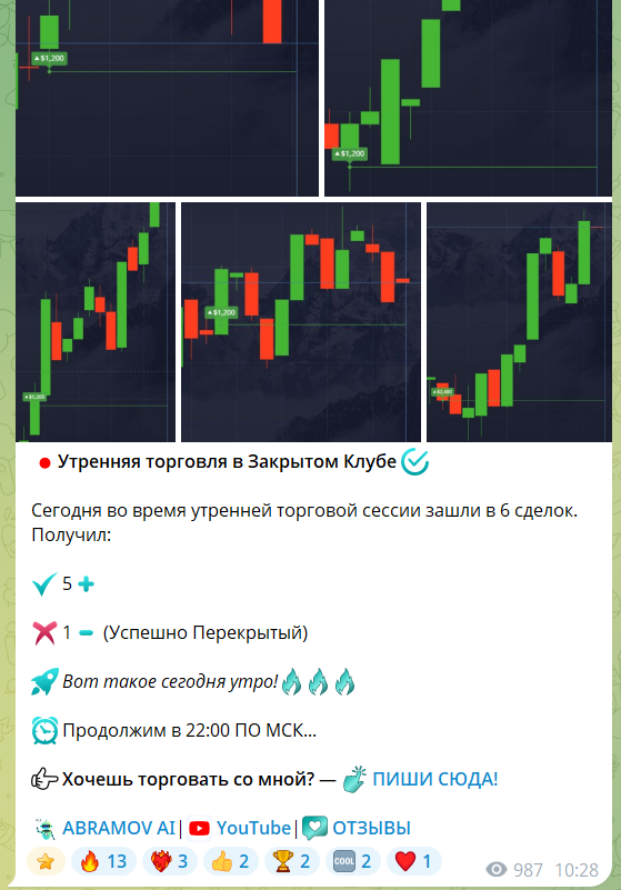 Отзывы в соцсетях Артура хорошие, однако на Ютуб часто их пишут либо одни и те же люди, либо люди с нулевым количеством подписок. В Телеграме публичные отзывы закрыты, а в топике “Отзывы” @traderArturAbramov, конечно, выкладывает позитив.